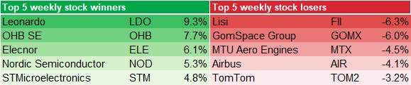 Weekly SpaceCap - These tables track weekly stock performance and key metrics for global and European SpaceTech companies, giving a quick snapshot of market trends. Data sourced from Yahoo Finance.
